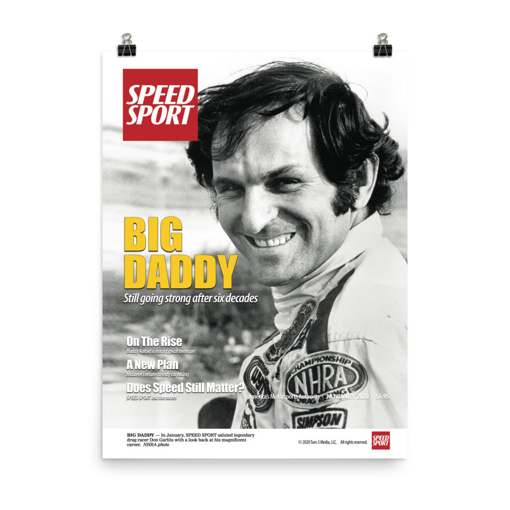 Museum quality print of SPEED SPORT Magazine limited edition cover featuring American drag racing legend "Big Daddy" Don Garlits. Own your own piece of drag racing history with this classic SPEED SPORT Magazine cover.
