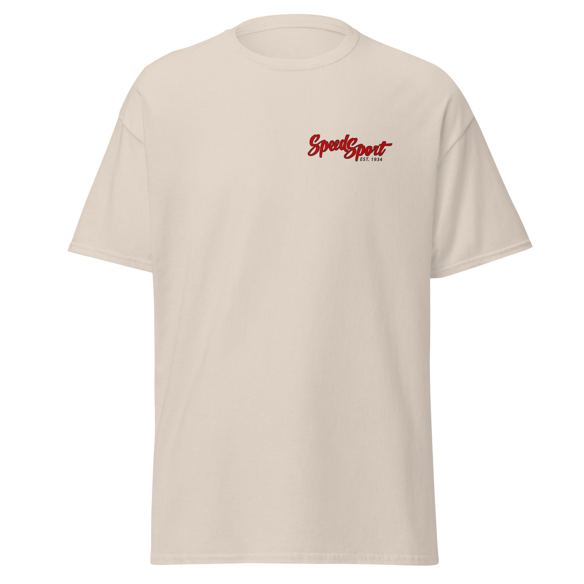 The 100% cotton men's classic tee will help you land a more structured look. It sits nicely, maintains sharp lines around the edges, and goes perfectly with layered streetwear outfits. Plus, it's extra trendy now!