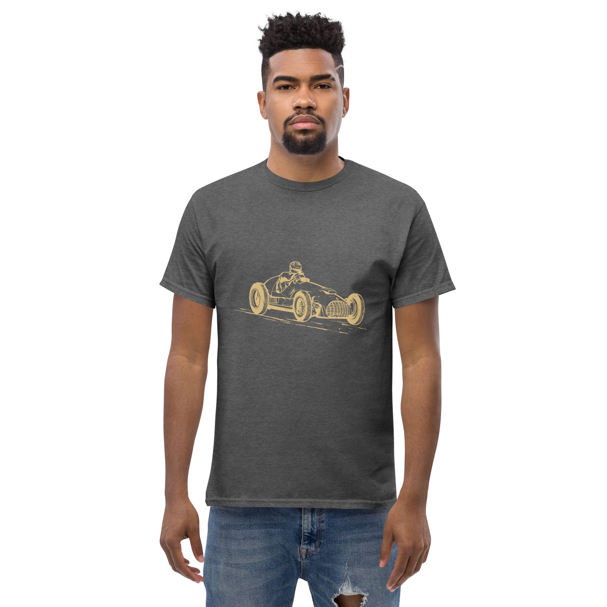 The 100% cotton men's classic tee will help you land a more structured look. It sits nicely, maintains sharp lines around the edges, and goes perfectly with layered streetwear outfits. Plus, it's extra trendy now!